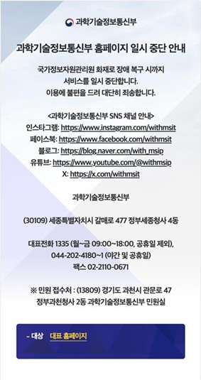 [그림 1] 국가정보관리원 화재로 인한 서비스 중단 공지
