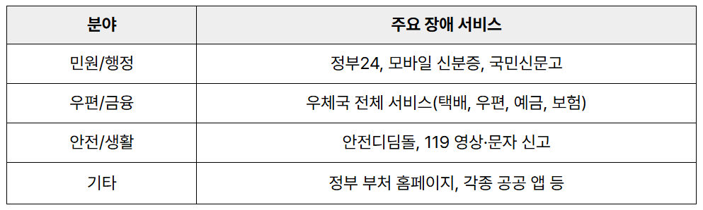 • 정부 복구 현황 확인: 행정안전부·정부24 공식 공지 참고