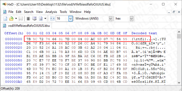 [그림 5] RTF 파일로 위장한 GZIP 압축 데이터