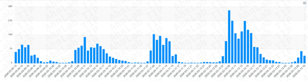 [그림 1] 카카오톡 설치 파일 위장 악성코드 증가 추이