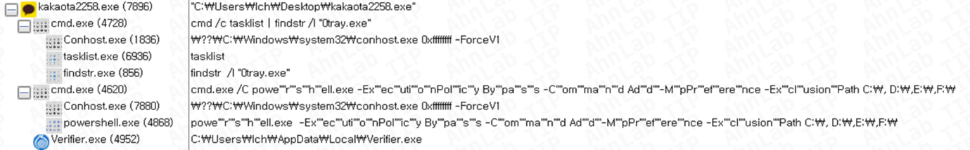 또한 이 과정에서 Windows Defender 검사 예외 경로를 추가해 보안 기능을 약화시키고, DLL 등록을 통해 지속성을 확보한다. 이후 정상 KakaoTalk Setup.exe를 함께 생성해 사용자에게는 정상 설치 과정처럼 보이도록 위장하는 특징을 보인다.