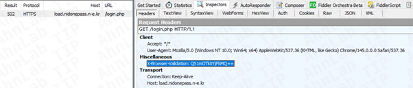 실행 과정에서는 관리자 권한 여부에 따라 UID를 생성하며, 문자열 앞에 “A-“ 또는 “U-“ 접두사를 붙여 구분한다. 이 값은 Base64로 인코딩돼 “X-Browser-Validation” 헤더에 포함된 채 C2 서버로 전송된다.