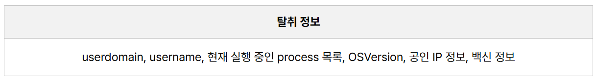 실제 분석 과정에서 드라이브 정보, 네트워크 설정(ipconfig 사용), 실행 중인 프로세스 정보(tasklist 사용)를 확인하는 동작이 관찰됐다.