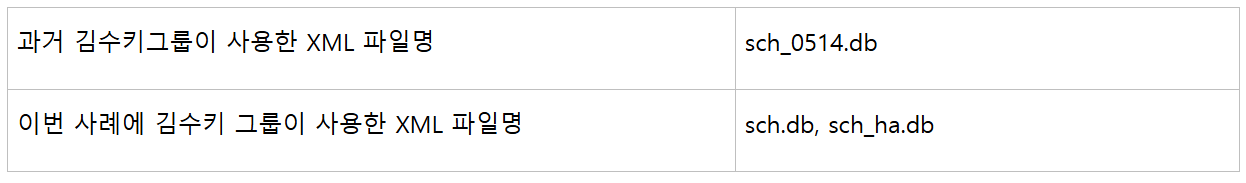 과거 김수키 그룹은 sch_*.db 형태의 XML 파일을 작업 스케줄러 등록에 활용한 정황이 포착됐다.