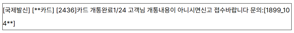 금융기관 사칭 유형은 카드 개통, 발급 완료, 이상 거래 안내 등 사용자가 즉시 사실 여부를 확인해야 할 것처럼 보이는 내용을 앞세워 불안감을 자극하는 방식이 주로 활용된다. 실제 사례에서는 국제발신 표시와 함께 카드사 명칭, 카드 개통 완료 안내, 문의 전화번호 등을 함께 제시해 정상적인 금융사 알림처럼 보이도록 구성돼 있다.