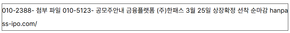 공모주 사칭 유형은 상장 확정, 일반 청약, 선착순 마감 등 투자 관련 키워드를 앞세워 사용자의 투자심리를 자극한다. 실제 사례에서도 기업명과 상장 일정 등을 간단히 제시한 뒤 투자 관련 사이트로 접속하도록 유도하는 방식이 확인됐다.